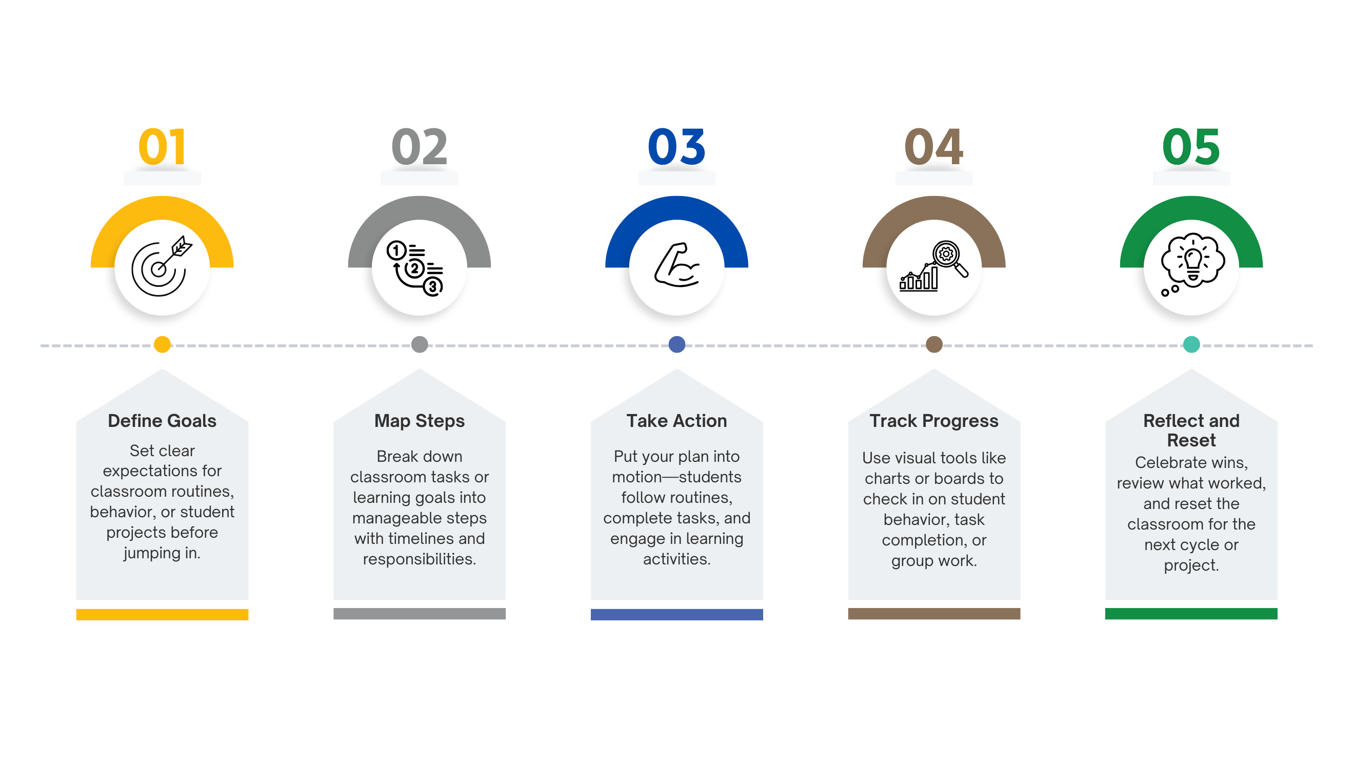 We co‑define a few classroom indicators tied to outcomes (e.g., transition time, on‑time task completion, student help‑requests, rework/errors, and one weekly improvement captured). This mirrors PMI’s approach to measuring quality output and value focus: track what matters, review it regularly, and make small adjustments to improve flow and learning
